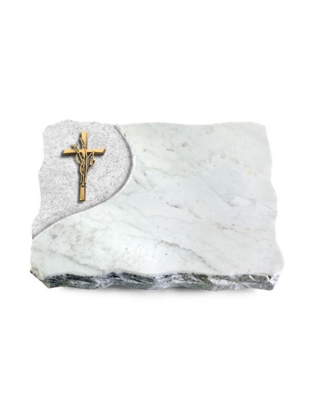Grabplatte Omega Marmor/Folio Kreuz/Ähren (Bronze)