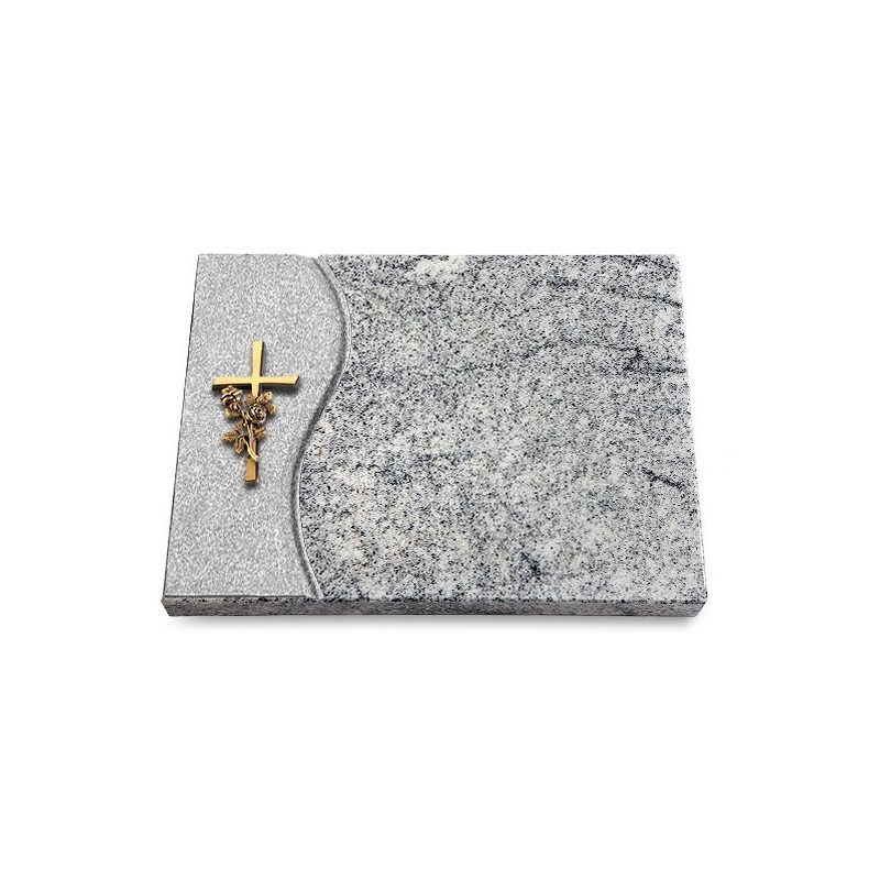 Grabtafel Viskont White Wave Kreuz/Rose (Bronze)